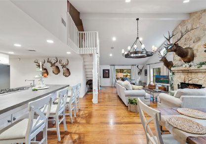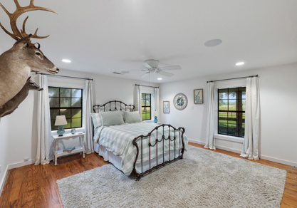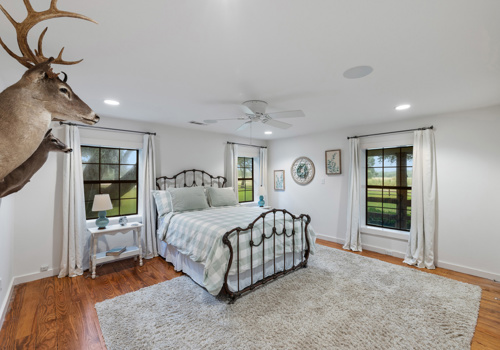 Nestled under the shade of 100-year-old live oaks, this serene weekend getaway offers a perfect blend of relaxation and recreation just five minutes south of Columbus, Texas, and only 75 miles from downtown Houston. The property features a spring-fed, stocked pond with a pier, ideal for peaceful afternoons by the water. The 2,240-square-foot main house and 2,480-square-foot guesthouse, with a large game room, provide comfortable accommodations, while the outdoor swimming pool, firepit, and shooting range offer endless entertainment. A two-stall horse barn, 2,400-squarefoot metal barn with living quarters, and rolling terrain dotted with live oaks and open pasture create the ideal retreat for nature enthusiasts. Wildlife abounds with whitetail deer, ducks, dove, and hogs, making this property a true outdoorsman’s paradise.