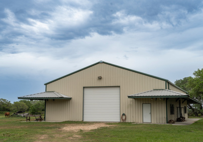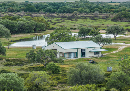 The ranch’s operational headquarters is the 5,496-square-foot steel-frame utility barn with (4) electronic overhead roll-up doors, allowing two-directional pull-thru use, built in 2015. The utility barn offers a commercial-style game processing facility – complete with a meat trolley, rail system, and walk-in cooler that provides a professional setup for processing harvests after the hunt. Wrapped in covered patios, wired, and plumbed with ample space for work and equipment storage.